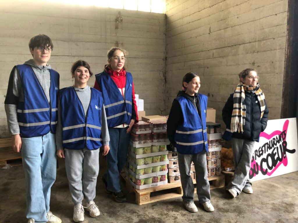 Le vendredi 19 décembre 2025, un autre petit groupe de 5 élèves de 5è a vécu l’heure civique en venant aider à décharger le camion au local des restos du cœur suite à l’opération menée au sein du collège de ventes de chocolats Monbana dont les bénéfices ont permis d’acheter des denrées.