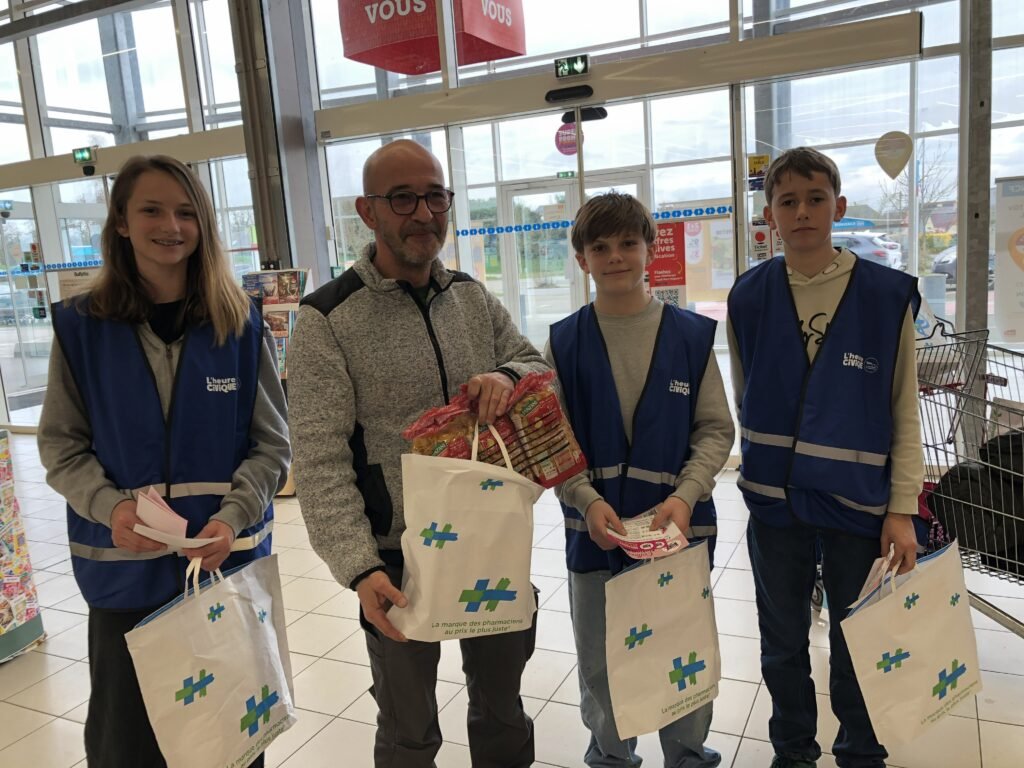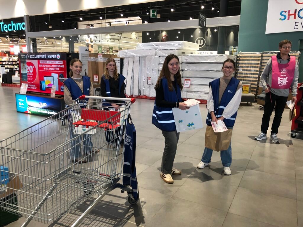Le vendredi 6 mars, enfin, 14 élèves de 6è,5è,4è et 3è ont vécu à leur tour l’heure civique en participant à la collecte nationale des restos du cœur, avec des bénévoles et des adultes du collège répartis entre l’hyper U, le Lidl et le U Express.
